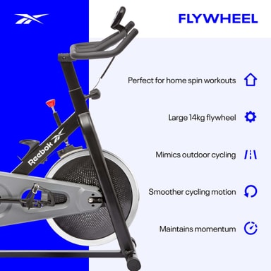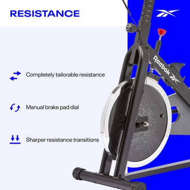 Reebok Sprint Bike er lavet til at efterligne følelsen af udendørs cykling og tilbyder en mere realistisk indendørs cykeloplevelse. Designet til at gemme din energi og bevare dit momentum, skaber cyklen en jævnere cykelbevægelse og mere ensartet kadence sammenlignet med traditionelle motionscykler. Med et stort 14 kg kædedrevet svinghjul giver Sprint Bike dig total kontrol over din intensitet med fuldstændig skræddersyet modstand via bremseklodsskiven. Manuelt justerbar uden behov for at cykle gennem trinvise niveauer giver bremseklodshjulet skarpere modstandsovergange til dine hjemmespin-træning