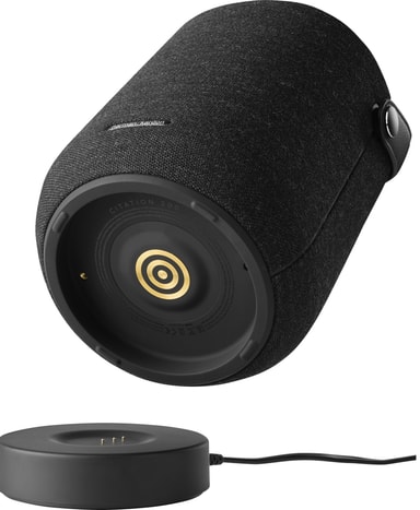 Harman Kardon Citation 200 leverer op til 8 timers brugstid på en enkelt opladning. Når batteriet er lavt, indsætter du blot det medfølgende USB-kabel og lægger den i den slanke og kompakte holder (sælges separat).
