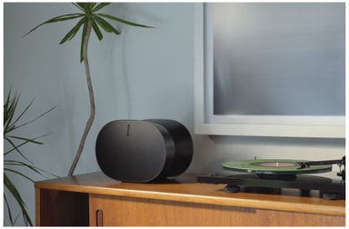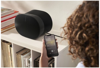 Tilsluttes trådløst, betjen din højttaler via stemmestyring fra Sonos-appen, og administrer al din musik fra din telefon. Lyt til radio, podcasts, eller vælg mellem de mange underholdningsmuligheder i Sonos Radio.