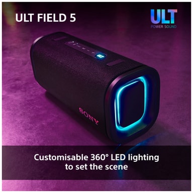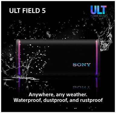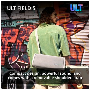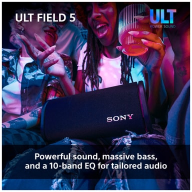 Denne Sony ULT Field 5 bærbare højttaler leverer enkraftfuld lyd i en kompakt og holdbar indpakning. Forbind dine smarte enheder via Bluetooth og nyd din yndlingsmusik eller podcasts. Med to ULT lydtilstande, 10-bånds equalizer, LED-lys og en IP67 støv- og vandtæt klassificering er denne højttaler den ideelle ledsager til at have med dig på farten.