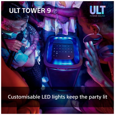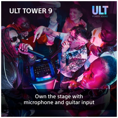Denne Sony ULT Tower 9 bærbar festhøjttaler sikrer, at din fest efterlader et indtryk. Det fantastiske lydsystem med X-Balanced højttalere garanterer en fantastisk lyd med dyb bas og 360° spredning. Tilslut dine smart-enheder via Bluetooth og stream dine yndlingssange, mens du imponerer alle med LED-lysshowet. Vælg mellem 2 specialiserede lydtilstande for at booste din musik og indtag scenen med mikrofon- og guitarindgangene.