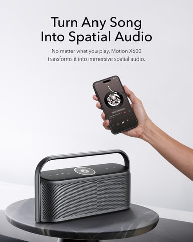 Denne Soundcore Motion X600 trådløse bærbar højttaler løfter din lydoplevelse med kraftfulde 50 W højttalere og omsluttende rumlig lyd. Ud over op til 12 timers spilletid på en enkelt opladning har den også Type-C opladning, IPX7-certificering og knapbetjening.