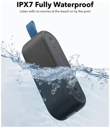 Placer din højttaler hvor som helst uden at bekymre dig om vandsprøjt. Den vandtætte IPX7-klassificering sikrer, at din højttaler endda kan overleve at blive kortvarigt nedsænket i lavt vand.