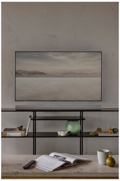 Den karakteristiske Harman Kardon-æstetik er lavet af kvalitetsmaterialer og er tydelig i ethvert designelement, fra Kvadrat-stof lavet af ægte uld til slående metalliske detaljer. Med sit tidløse design vil Citation MultiBeam 1100 blande sig problemfrit med enhver tv-stil og komplementere din boligindretning.