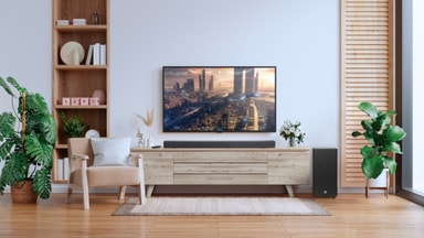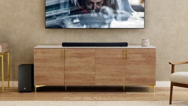 JBL Cinema SB595 er en soundbar med 3.1.2.-kanalopsætning og ægte Dolby Atmos® samt en trådløs subwoofer til dig, der ønsker en virkelig fordybende lydoplevelse med kraftfuld bas