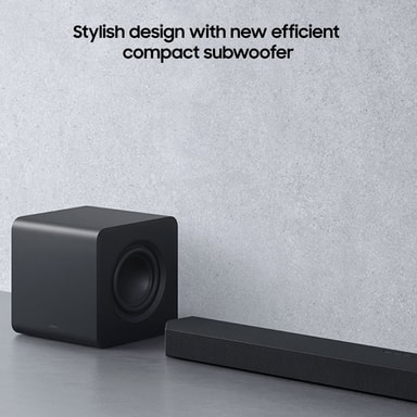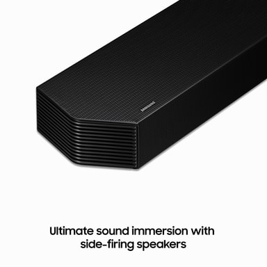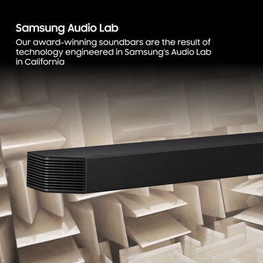 Designet i Samsung Audio Lab leverer denne soundbar fem front- og surroundkanaler, en subwooferkanal og 2 opadrettede kanaler for at give dig utrolig surroundlyd, der vil fylde dit hjem.