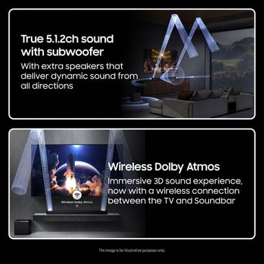 Oplev den imponerende trådløse Dolby Atmos, der leverer en omsluttende lyd fuld af fylde og dybde. Denne lydteknologi leverer multidimensionel lyd og får musik, personer eller ting til at komme til live og får dig til at føle, at du er midt i historien.