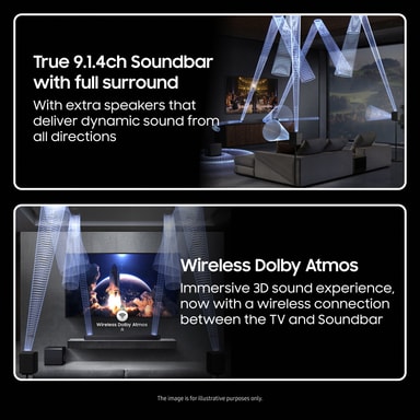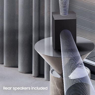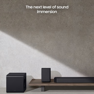 Designet i Samsung Audio Lab leverer denne soundbar ni front- og surroundkanaler, en subwooferkanal og 2 aftagelige baghøjttalere med 2 kanaler hver for at give dig utrolig surroundlyd, der vil fylde dit hjem.