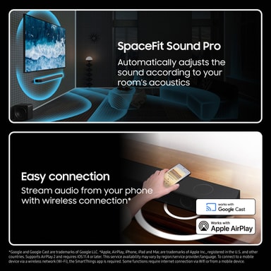 • Airplay 2, Chromecast, HDMI, eArc