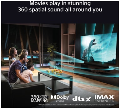 BRAVIA Theatre Bar 8 giver dig den ultimative surround sound oplevelse, da Sonys 360 Spatial Sound Mapping skaber fantomhøjttalere omkring dig. Dolby Atmos / DTS:X bringer den autentiske biograflyd ind i dit hjem.