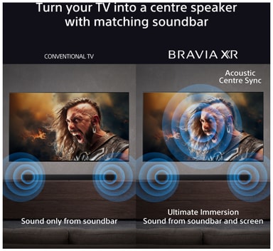 Her er noget af det bedste ved BRAVIA; skub soundbaren ind under dit BRAVIA TV og åbn op for eksklusive funktioner! Acoustic Centre Sync forvandler dit TV til centralhøjttaleren, Voice Zoom 3 gør dialogen tydeligere m.m.