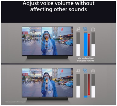 Her er noget af det bedste ved BRAVIA; skub soundbaren ind under dit BRAVIA TV og åbn op for eksklusive funktioner! Acoustic Centre Sync forvandler dit TV til centralhøjttaleren, Voice Zoom 3 gør dialogen tydeligere m.m.