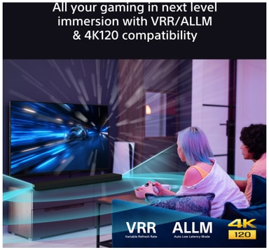 BRAVIA Theatre Bar 9 understøtter de seneste gaming-formater, herunder Variable Refresh Rate (VRR) og Auto Low Latency Mode (ALLM) i HDMI 2.1 samt 8K og 4K120 Passthrough.