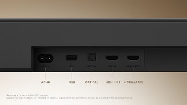 Fyll rommet ditt med lyd og ta kinofølelsen hjem med kun én HDMI-kabel. HDMI eARC 2.1 muliggjør overføring av høyoppløselige, ukomprimerte lydformater som Dolby Atmos og DTS:X fra TV-en til lydplanken.