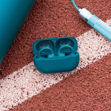 Bær dine earbuds komfortabelt og nyd en innovativ tilgang til sikker lytning med det ergonomiske, lette og sikre øreklemme-design. Lyt til din yndlingsmusik eller podcasts i premium kvalitet, mens du forbliver opmærksom på dine omgivelser.