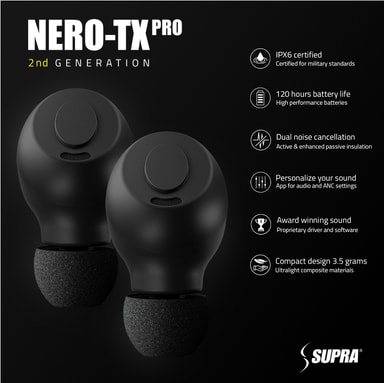 Supra NERO-TX PRO er lavet af materialer af militærkvalitet, som gør disse høretelefoner sved- og stødbestandige. Nyd de slidstærke men samtidigt lette høretelefoner på blot 3,5 gram.