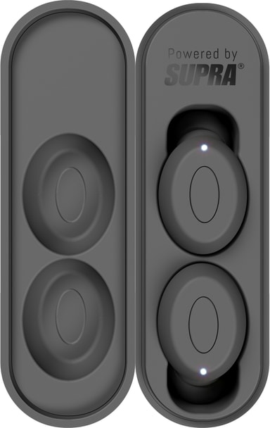De kompakte true wireless Supra NERO-TX in-ear høretelefoner leverer lyd i høj kvalitet og kan parres med enheder med Bluetooth 5.0. De er sved- og stødresistente, og har en spilletid på 5 timer pr. opladning, med 15 ekstra opladninger via ladeetui.Læs mere om produktet