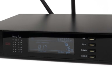 Professionel UHF trådløs mikrofon med 200 valgbare UHF-frekvenser, 4 antenner, SMT-kredsløbsdiversitet, IR-scanning af frekvenser og en maksimal rækkevidde på op til 200 meter – ideel til sceneshows og optræden.