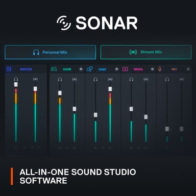 Juster din mikrofon ved hjælp af Sonar Softwaren, en brugervenlig pakke der understøtter drag and drop app-navigering, AI-støjreduktion og en 10-bånds parametrisk EQ.