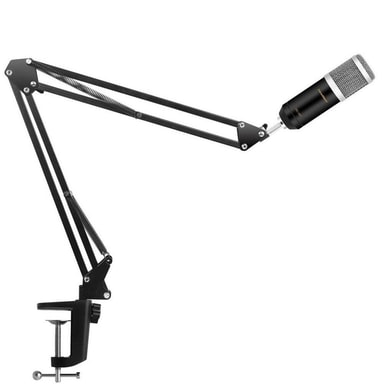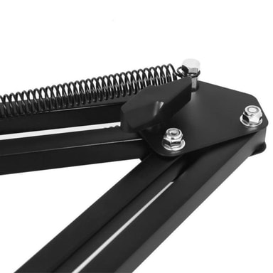 NÖRDIC robust og slidstærkt mikrofonstativ i stålkonstruktion med klemme, der kan monteres på en bordplade, der er max. 5 cm tyk. Pre-studie, udsendelse eller derhjemme. Superstærk fjeder med ekstra positioneringsskrue. Inkluderer metalmikrofonadapter 3/8"" til 5/8"" for at kunne tilslutte de fleste mikrofoner på markedet. Stødbeslag medfølger ikke.