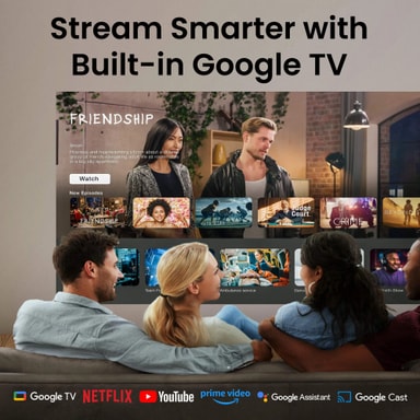 Få gang i aftenen på få sekunder – ingen besværlig opsætning. Med indbygget Google TV får du øjeblikkelig adgang til Netflix, YouTube, Prime Video m.m. Popcornen er klar, vennerne er her. Du skal bare trykke play.