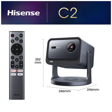 Hisense C2 Laser Mini-projektoren leverer billeder i høj kvalitet, fantastisk lyd og multimediekomfort i en let pakke. Dolby Vision og DTS Virtual:X giver en biografagtig oplevelse, uanset hvor du er, mens Auto Keystone-funktionen giver større frihed i placeringen. Med op til 25.000 timers lampelevetid behøver du ikke bekymre dig om holdbarheden.