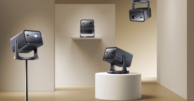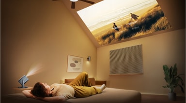 Projektoren tilpasser sig alle skærmstørrelser fra 65” til 300”, så du kan projicere på væggen i stuen eller i baghaven.