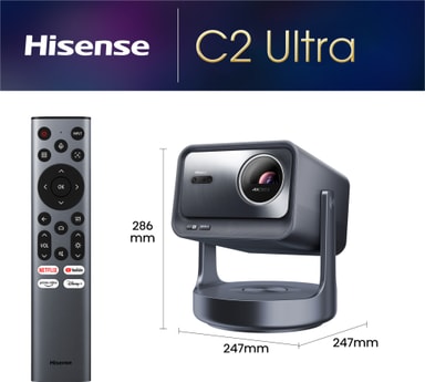 Hisense C2 ULTRA Laser Mini projektoren leverer visuel kvalitet i høj klasse, fantastisk lyd og multimediebekvemmelighed i en let pakke. IMAX Enhanced Dolby Vision og Atmos giver en biograflignende oplevelse, uanset hvor du er. Gimbal-designet giver større frihed i placeringen, mens det optiske zoom gør det endnu nemmere at indstille den perfekte skærm. Og du behøver ikke bekymre dig om dens levetid, for med op til 25.000 timers lampetid kan denne projektor være ved din side i lang tid.