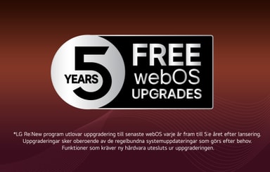 webOS Re:New sørger for, at dit tv føles som nyt i 5 år efter det blev lanceret. Med de årlige opgraderinger af hele systemet får du både næste version af webOS og alle de nye funktioner, der følger med den! Og efter 5 år får du stadig de almindelige app- og systemopdateringer, du er vant til, så dit tv stadig er ajour og relevant i mange år endnu.