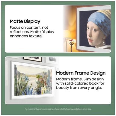 Pift stuen op med et smukt TV, der tilfører et kunstnerisk element, afspejler din stil og glider harmonisk ind i indretningen. The Frame er en del af værket snarere end blot et TV. Det pryder dit hjem og imponerer samtidig med sin QLED-billedkvalitet.