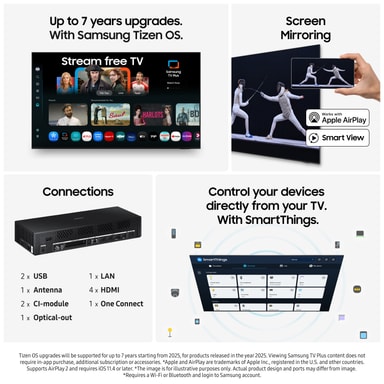 *Tizen OS-opgraderinger understøttes i op til 7 år fra 2025. Gælder for produkter lanceret i 2025.
