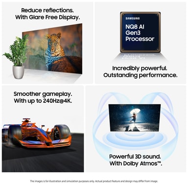 Samsungs bedste TV med fordybende AI-billed- og lydteknologi til uovertruffen underholdning. Forførende design og trådløse tilslutningsmuligheder fuldender oplevelsen.