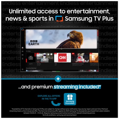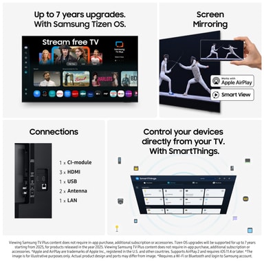 Oplev et mere intelligent og integreret system med Tizen og få al din underholdning samlet ét sted. Tizen er designet til at give dig nem adgang til dit yndlingsindhold, så snart dit Samsung Smart TV tændes. Få adgang til dine yndlingsfilm, serier, sociale medier, eller download og udforsk nye og spændende apps.