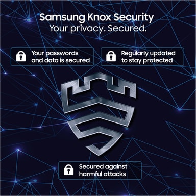 *Samsung Knox Security gælder for Samsung TV drevet af Tizen®, lanceret siden 2015. Seneste softwareopdatering er påkrævet.