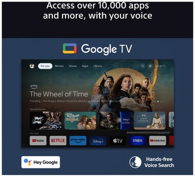 Over 10.000 apps og spil er tilgængelige på dette Google TV, sammen med stemmesøgning10, Apple AirPlay 211 og Chromecast built-in.12